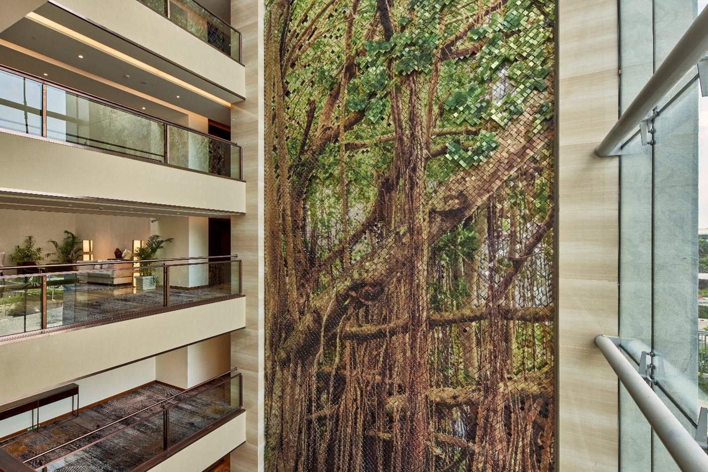 • Nature is not just a backdrop—it is a design element. At Taj Bangalore, landscaped sunken courts and a sculptural tree-inspired centerpiece anchor the hotel’s biophilic intent, helping regulate the microclimate while echoing Bengaluru’s “Garden City” legacy. The fifth-floor semi-open restaurant connects guests with the natural surroundings, offering panoramic views of the runway.