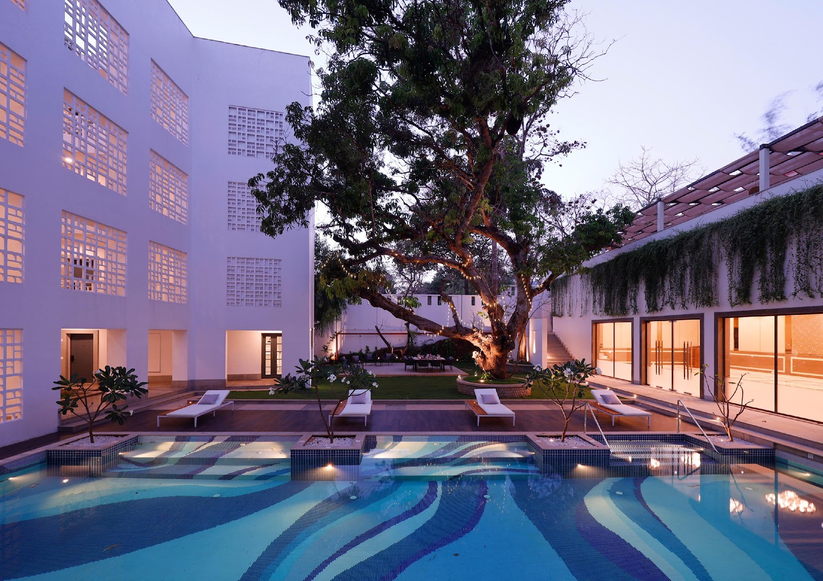• At The Yellow House, architecture respects the undulating Goan terrain. Existing trees were integrated into the spatial plan, and open courtyards and alfresco dining spaces promote a seamless indoor-outdoor transition. The suites are surrounded by lush greenery and private gardens, while jacuzzies and terraces create pockets of intimacy with nature—fostering a calm, immersive environment for relaxation.