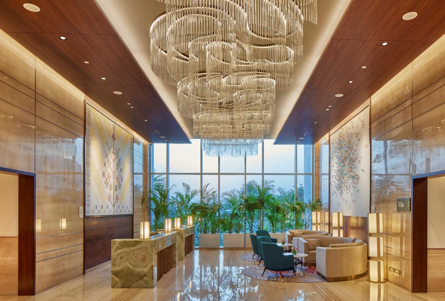 • Luxury gains meaning when it’s rooted in place. Taj Bangalore draws from Karnataka’s cultural heritage, using vernacular references like a C-shaped plan reminiscent of traditional courtyard homes. Interiors celebrate regional craftsmanship with handwoven textiles, custom artwork, and woodcarvings that evoke local artistry. Even the dining area subtly nods to Bengaluru’s colonial-era architecture.