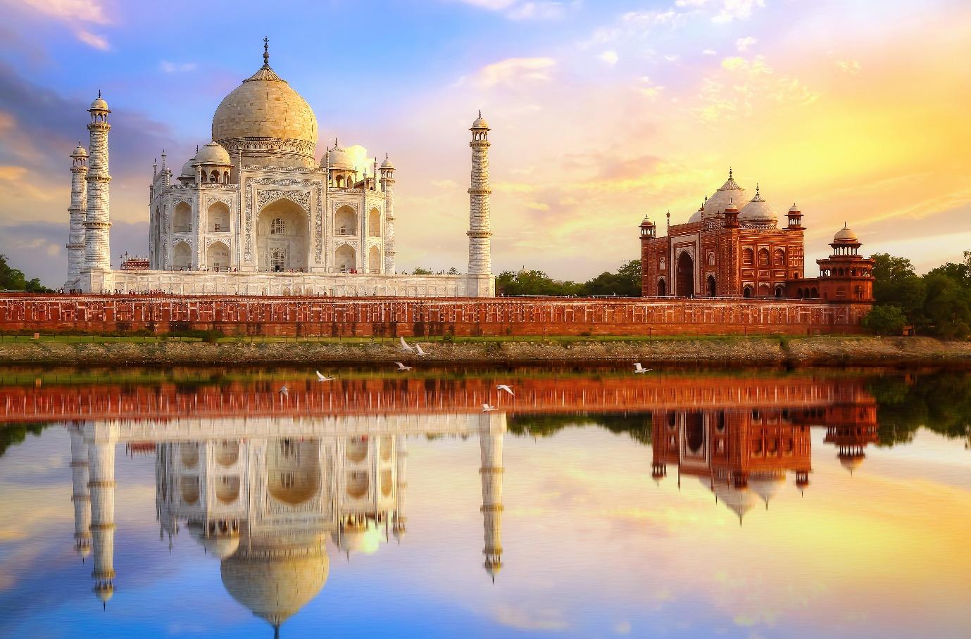 Commissioned by Mughal Emperor Shah Jahan in 1632 as a mausoleum for his wife Mumtaz Mahal, the Taj Mahal is a masterclass in Mughal architecture, drawing from Persian, Islamic, and Indian traditions. Designed by Ustad Ahmad Lahauri, the structure is composed almost entirely of white Makrana marble, inlaid with semi-precious stones (pietra dura) and Quranic calligraphy.