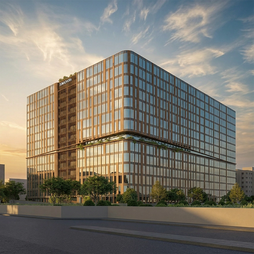 The office floors are planned for both flexibility and workplace quality, with maximised leasable area, divisible floorplates, and fully daylit workspaces oriented towards expansive sea and city views. The core is positioned to temper the harsher western exposure, freeing the office edges for daylight and outward-facing vistas. At the upper levels, landscaped amenity terraces and a rooftop penthouse extend the experience beyond the conventional office floor. The façade, explored through a series of vertical expressions, is conceived to give the tower a refined and memorable silhouette. CG House brings together premium arrival, efficient planning, and a strong urban presence in a commercial building shaped by light, views, and the experience of the city.