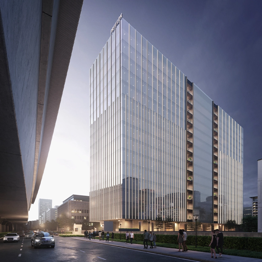 Located in Marathahalli, Bengaluru, the project occupies a highly visible site along the Outer Ring Road, with the proposed Blue Line Metro running directly in front and a predominantly low-rise residential context around it. This setting presents both opportunity and constraint: exceptional connectivity and commercial prominence on the one hand, and the demands of primary and secondary nala buffers, aviation height restrictions, and setback requirements on the other. Rather than treating these conditions as limitations, the proposal uses them to shape a more deliberate and resilient commercial address.