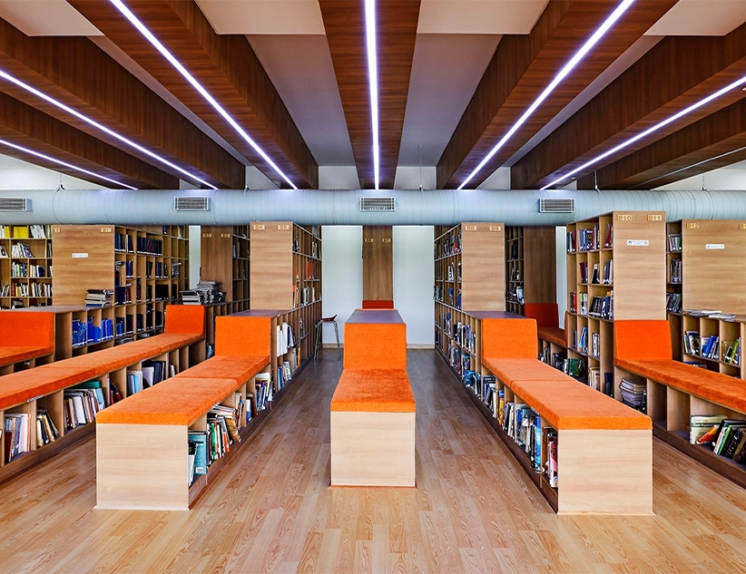 The Sushant School of Design and Architecture in Gurugram responds to the needs of an emerging urban India and is set within a green campus framed by views of the Aravalli hills. Conceived as a collaborative hub, the school brings multiple design disciplines under one roof to support integrated learning and partnerships. Its planning draws from the compact, pedestrian-oriented street networks of Shahjahanabad, emphasising social interaction and walkability.